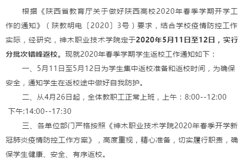 自5月10日起,按照先省外后省内、先毕业年级后其他年级的原则,分批错峰有序启动返校复学工作。
