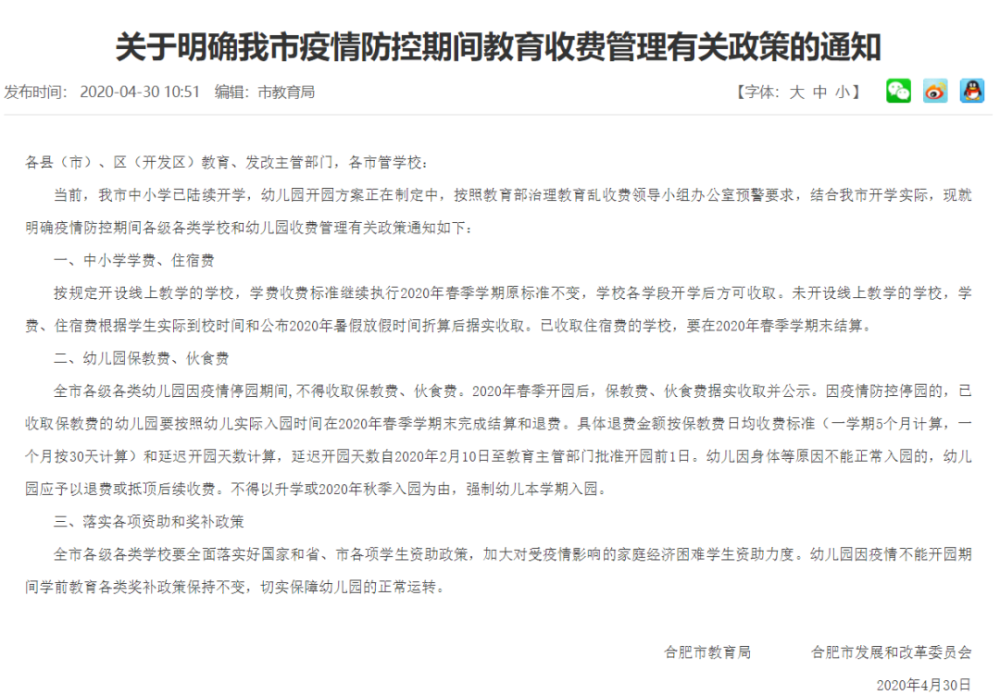 合肥市教育局通知明确
