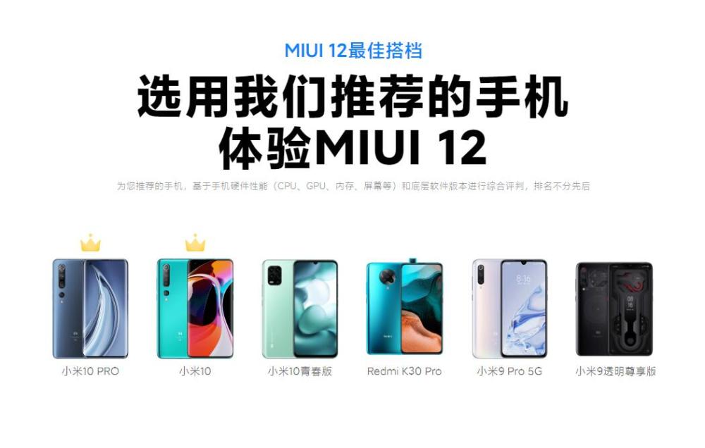 不过受限于MIUI12一些重磅功能的加入,部分功能对于硬件性能有一定要求,因此想要体验MIUI12的所有新功能特效,官方推荐小米MIX3、小米8系列、Redmi K20 Pro系列、小米9系列、小米9 Pro 5G、Redmi K30 Pro以及小米10系列机型,而配置相对较低的部分小米机型和Redmi机型也只能体验部分MIUI12的新功能。
