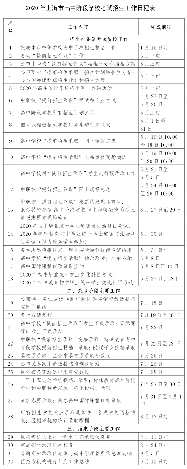 权威发布!2020年上海中考招生工作实施意见(附考试招生工作日程表)