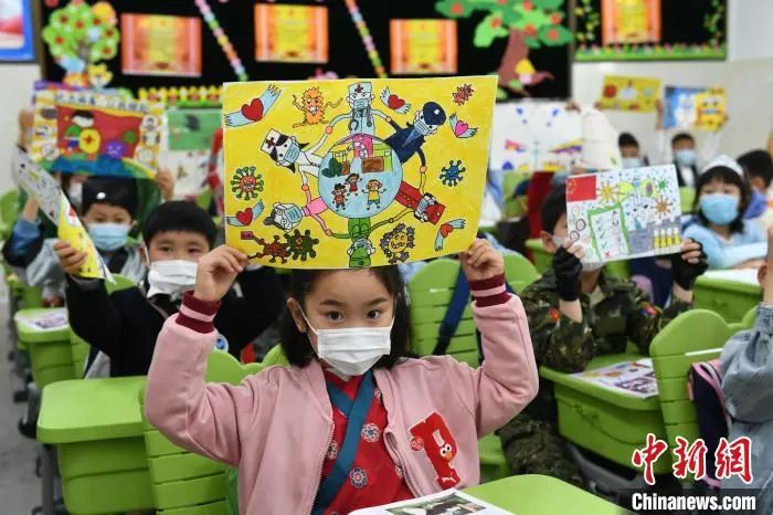 图为5月6日,在合肥市师范附属小学,小学生正在美术课上展示自己的作品。 张大岗 摄