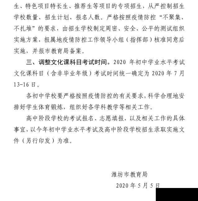 5月5日潍坊市教育局做出了这样的决定