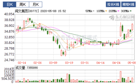 阅文与作者之间的风波尚未结束,但资本市场的情绪已经有所缓解。4月28日,阅文宣布原管理团队吴文辉等5人“荣退”,并由腾讯集团副总裁程武接手后,阅文股价单日暴涨14%,但因与作者合同争议持续发酵,接下来两个交易日阅文股价分别下跌4.65%和8.18%,随着事态有所缓解,5月8日阅文股价收于37.5港元/股,目前总市值380亿港元,为3月以来的高点。(北京时间财经 欧阳风)