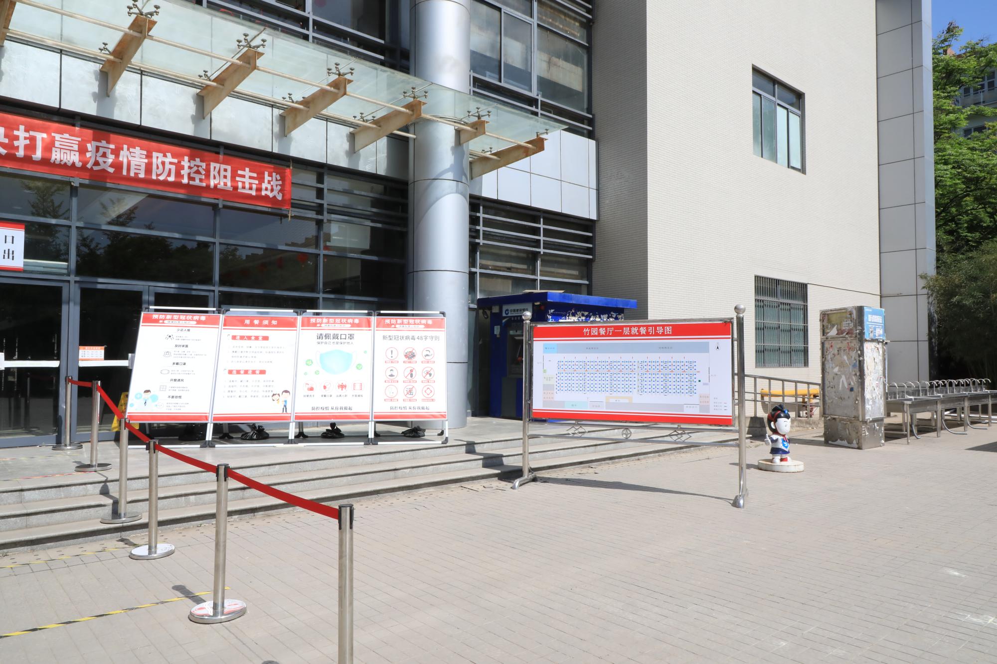 由于第一批返校的毕业班同学集中住宿在竹园公寓,作为距离竹园公寓最近的餐厅,竹园餐厅承担起了为第一批返校生提供餐饮服务的工作。在同学们返校前一周,餐厅即开始了彻底的卫生防疫清洁准备工作。