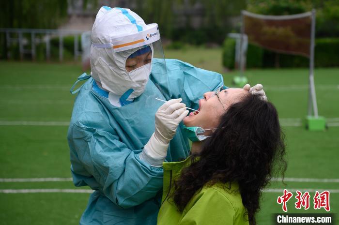 中新网太原5月8日电 (高瑞峰刘Z琛)5月,山西省各类学校未复课的学段将陆续返校复课。8日,在山西省太原市北环中学,医务人员为该校教职员工采集咽拭子,进行核酸检测,为学校复学复课保驾护航。