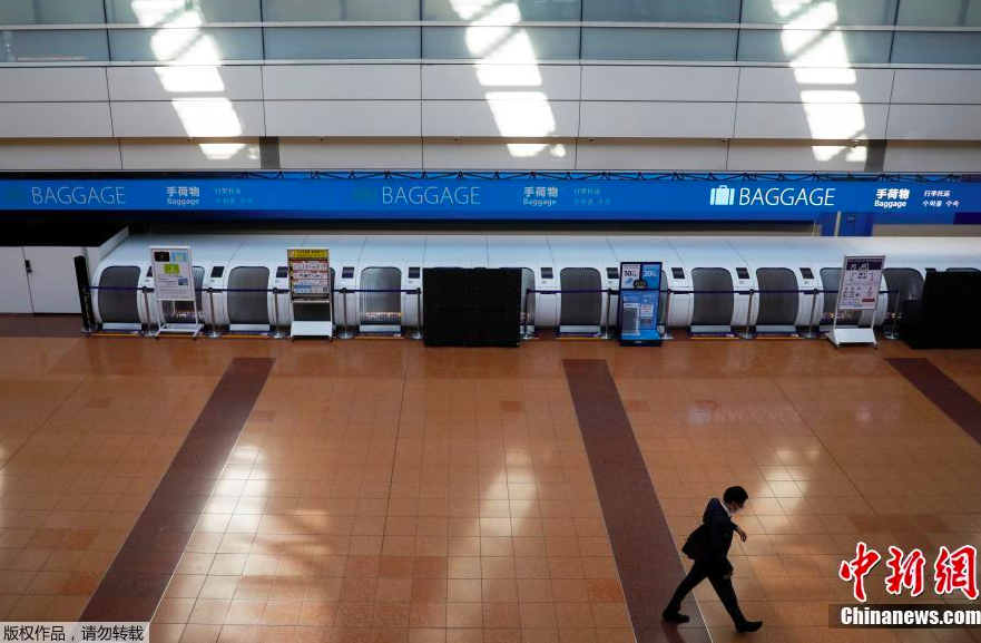 当地时间4月29日,日本东京羽田机场候机大厅几乎空无一人。图片来源:中国新闻网