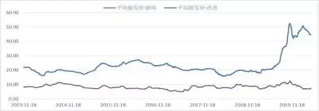 图表:鸡蛋和猪肉批发价 单位:元/公斤