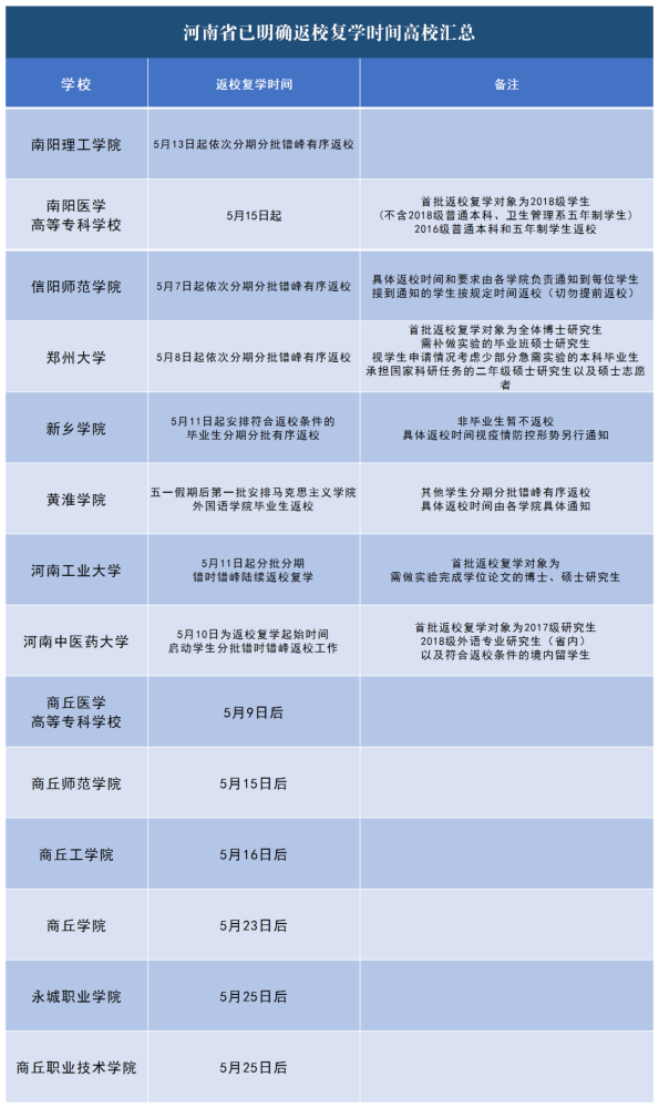 目前,河南多所高校已明确返校复学时间