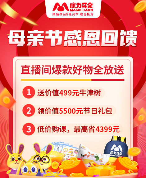 母亲节将至,各大品牌推出营销活动之际,在线少儿英语小班课平台魔力耳朵也推出系列感恩回馈用户活动。5月9日晚,平台将开启优惠大放送直播活动,届时将有多轮抽奖+多重好礼赠送,价格空前优惠,实力感恩长久以来支持魔力耳朵品牌的忠实用户。