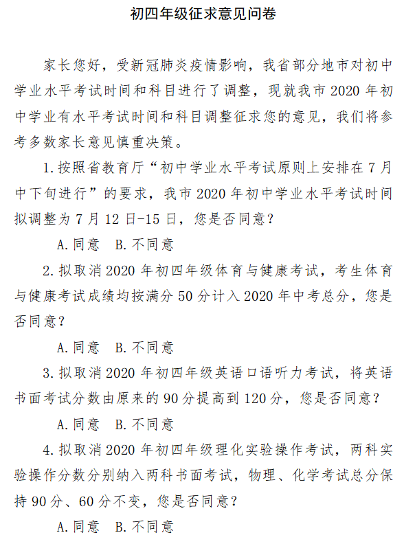 淄博发布《初三年级征求意见问卷》