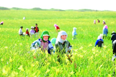 红寺堡区太阳山镇兴民村黄花菜采摘忙。本报记者张文攀摄