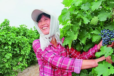 红寺堡区红寺堡镇中圈塘村村民高慧珍的酿酒葡萄丰收。宁夏吴忠市红寺堡区委宣传部提供