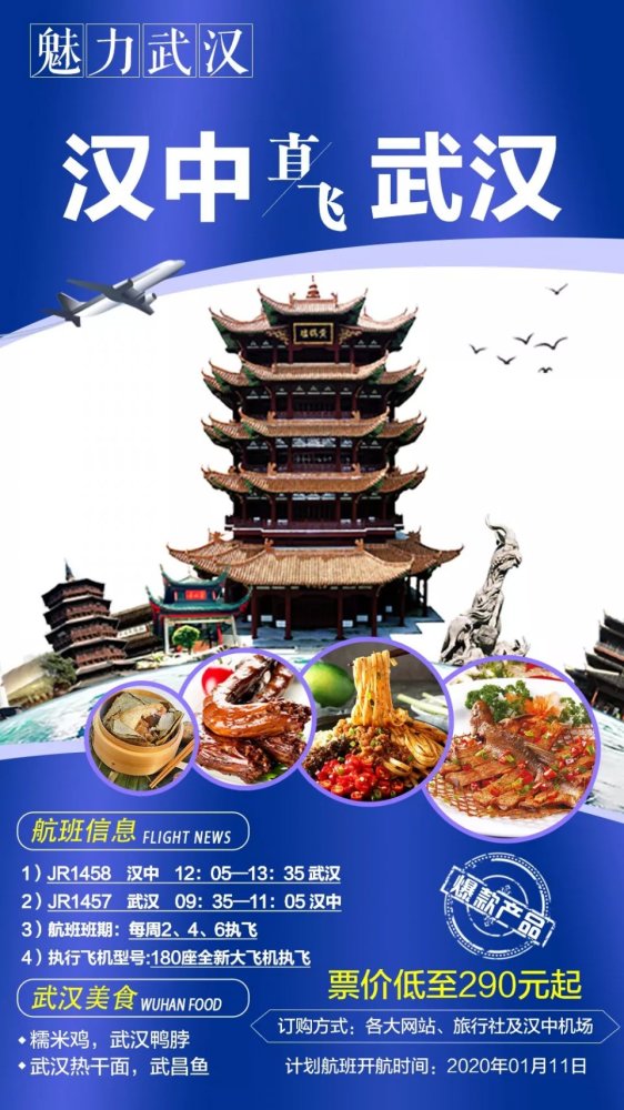 汉中至武汉飞机开航 黄鹤楼,热干面我来了