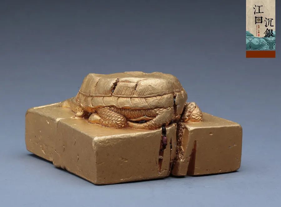 “蜀世子宝”金印,为方形印台、龟形印钮,印面铸有“蜀世子宝”四字。印台边长10厘米,厚3厘米,重约8公斤,含金量高达95%。“蜀”字证明这枚金印原为明蜀王府之物,“世子”为亲王嫡长子。金印为蜀王世子所有,是其身份象征,也是蜀王府历代世子传用之珍宝。其含金量高达95%,比同是江口沉银发现的虎钮金印还要高,更是远超过张献忠本人的金册。2018年,江口沉银二期发掘过程中,曾出水“蜀王金宝”金印,重达数斤。但无论是重量还是含金量,“蜀王金宝”仍不敌“蜀世子宝”。