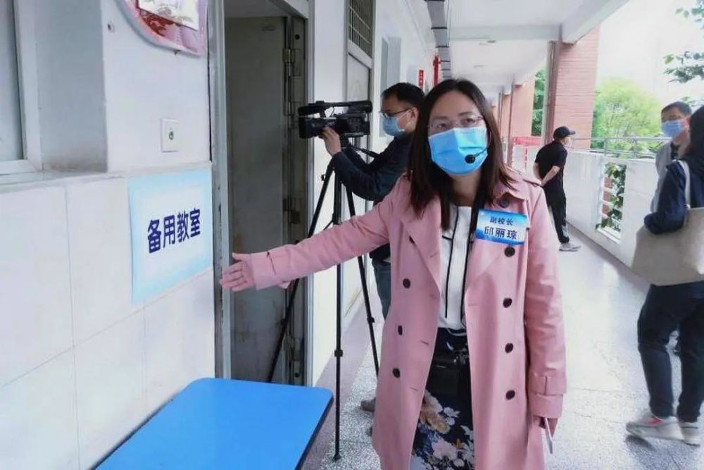 为了让学生在教室里也能保持安全距离,将每个班分成两班,即为AB班,这两个班紧挨着,安排副班主任加强管理。同时,在每一楼层设置了备用教室,以应对突发情况。