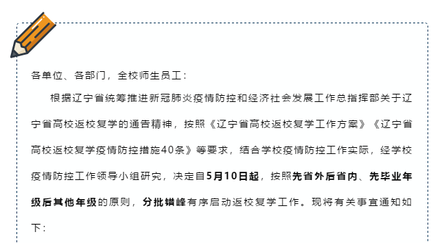 ◆[辽宁对外经贸学院]自5月8日起,学校陆续组织学生返校。