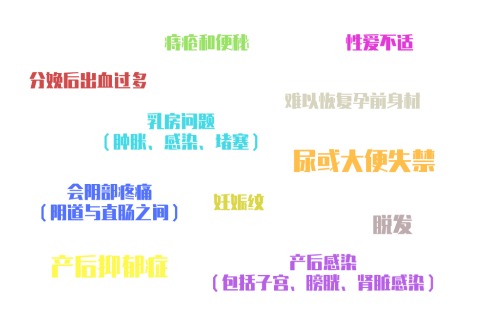据美国一个专业医疗咨询网站WebMD统计,最常见的生育后遗有以下一些: