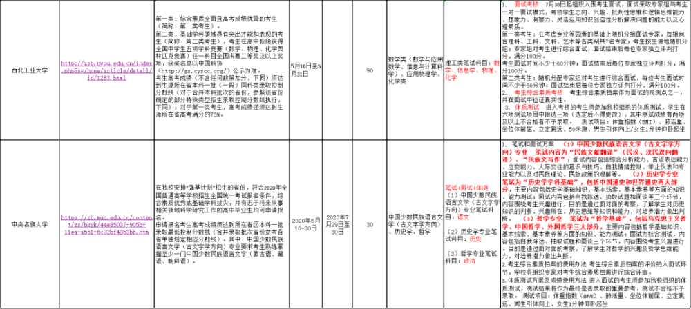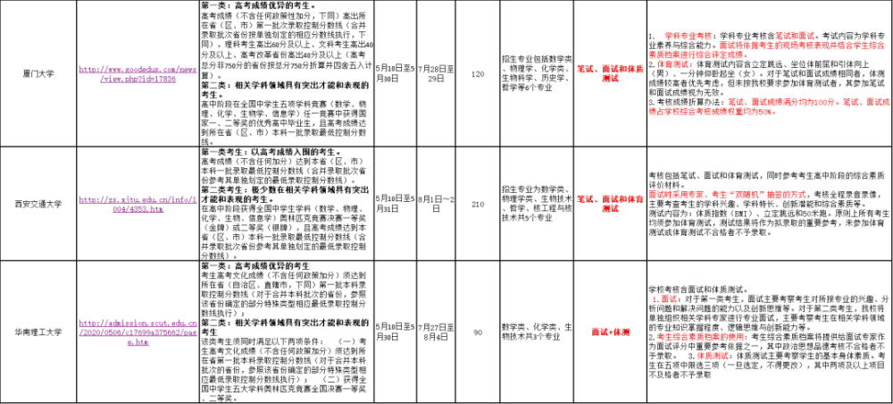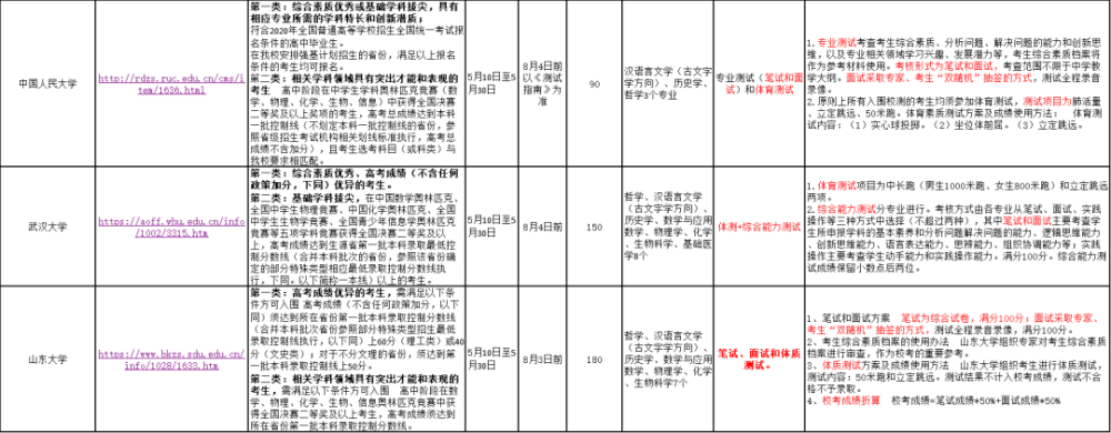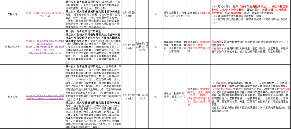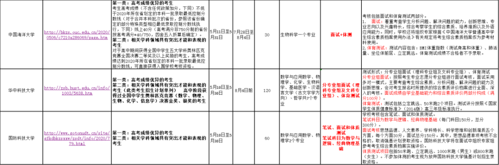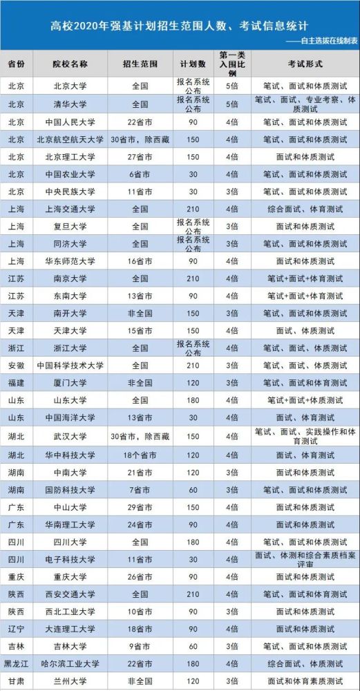 以下为高校2020年强基招生范围人数、考试信息统计: