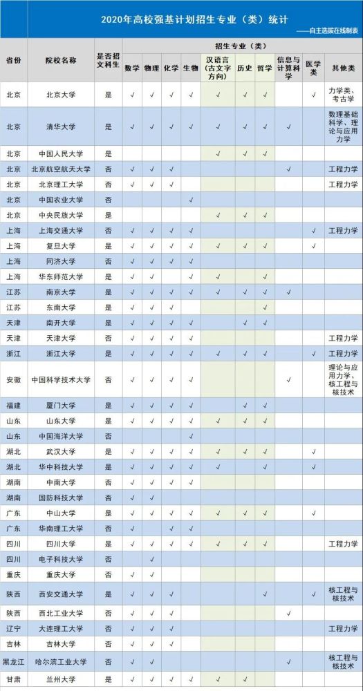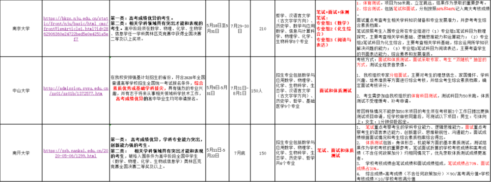 2020年强基计划高校的招生简章要点汇总