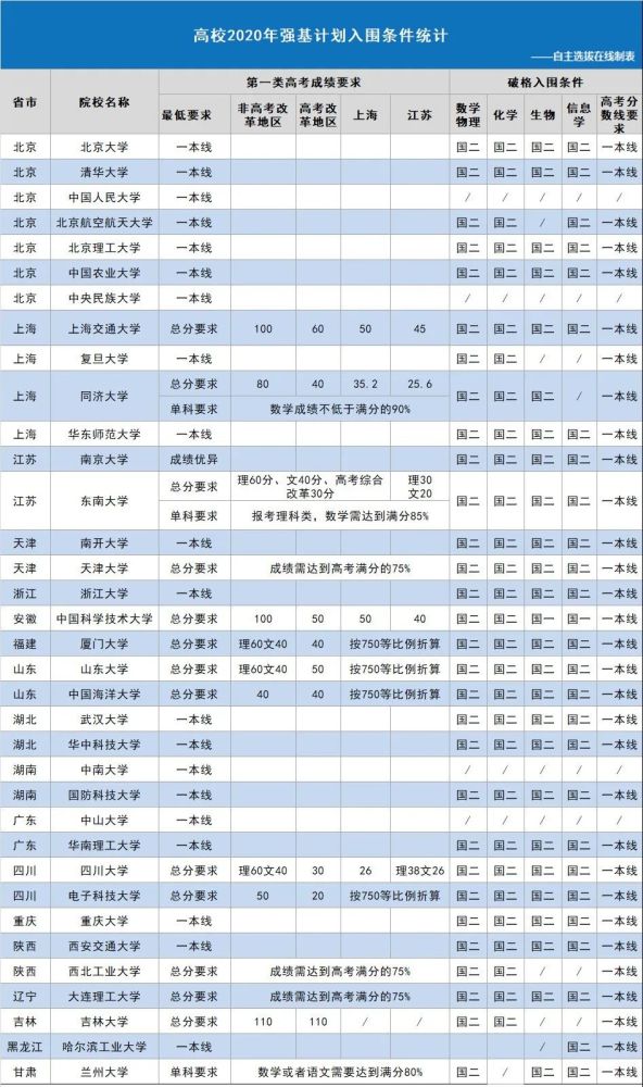 以下为高校2020年强基计划入围条件统计: