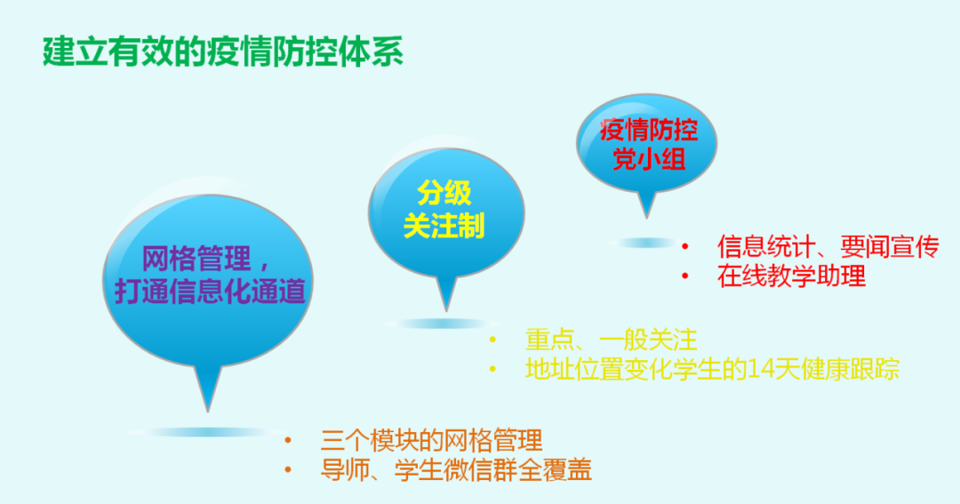 疫情防控体系 二、创新工作思路,多举措推进党建工作“云”模式 支委会“云”模式: 3月3日,新能源与环境学院研究生各党支部召开“防控疫情担使命 持续奋进守初心”支委会“云”会议,同“屏”共振,交流思想,讨论新学期支部工作计划。