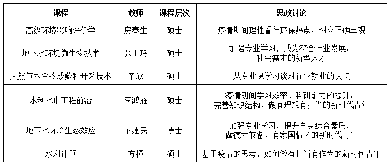 三、强化思想引领,探索线上教学课程思政模式 扎实开展线上教学工作,2月26日研究生专业课《高级环境影响评价学》顺利进行了首次网络直播授课,成为学院第一门在线直播授课的研究生课程,其他课程根据教学安排陆续开课。以疫情期间提高学生学习兴趣和提升思想修养为主题开展研究生课程思政,思政教育融入专业学习,鼓励学生成为德才兼备的新时代大学生。