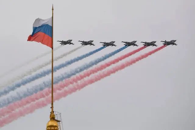 2020年5月9日俄罗斯举行卫国战争胜利日空中阅兵。图源:新华社