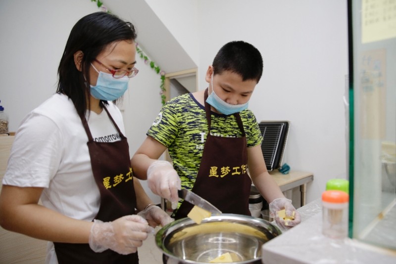 2018年10月,桃姐与另外几位在花都区的特殊儿童妈妈合资在大润发商圈附近组建星梦工作坊。星梦,代表着星星孩子的未来梦想。工作室的成立,让星星孩子的家长们有了互助交流的平台。更重要的是,这里成为了像卓卓一样的星孩们的培训基地――星孩们可以在这里尝试做一些简单的烘焙、手工,也有受过专业培训的家长们对他们进行职前教育,为的是让这群孩子们最终能融入社会。