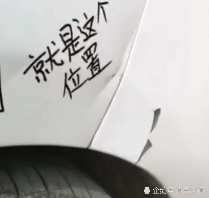 更让陶先生吃惊的是,这个小学生还用黑水彩笔,在车上做了记号,分别指出碰撞处和车轮下留的23块钱。