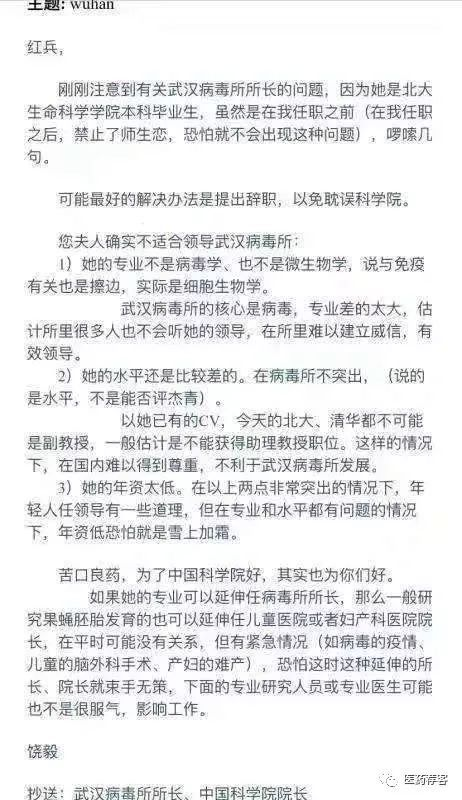 [4] 饶毅致信舒红兵,劝其夫人武汉病毒所所长辞职