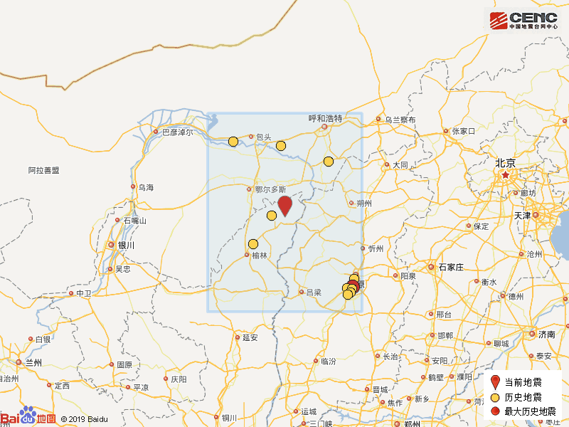 历史地震:根据中国地震台网速报目录,震中周边200公里内近5年来发生3级以上地震共12次,最大地震是2016年12月18日在山西太原市清徐县发生的4.3级地震(距离本次震中232公里),历史地震分布如图。