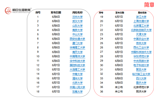 只有北京师范大学和同济大学尚未发布,
