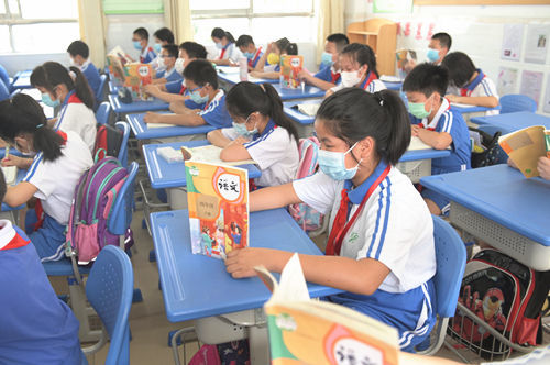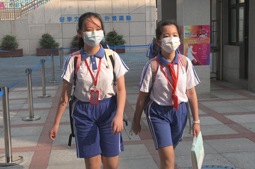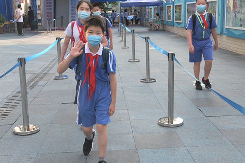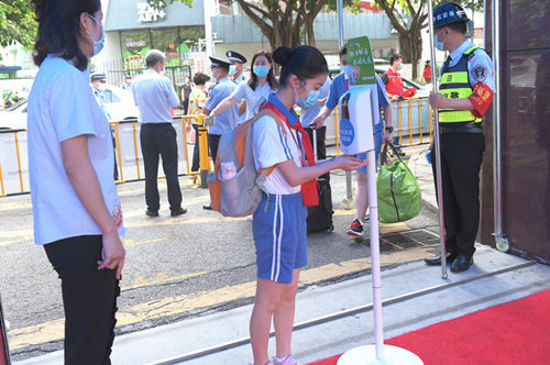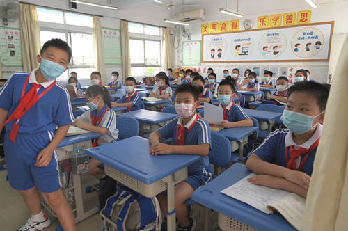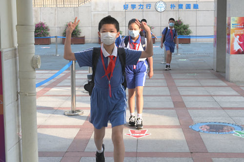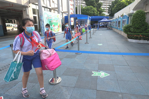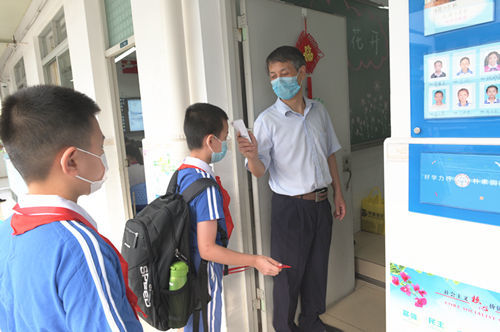 读创/深圳商报记者 包力/文 陈锡明/图5月11日早上不到7时,在荔园教育集团百花校区,渴望返校复课的孩子早早来到校门口,“校长好!老师好!”孩子们向迎接他们返校的校长、老师举手行礼,声音轻松欢快。出示胸卡、洗手消毒、通过红外线体温检测通道、分年级分路线到班级,孩子们在行进当中自动拉开间距。当日,荔园教育集团通新岭校区、百花校区、玮鹏校区、众孚校区、白沙岭教学点共2537名四至六年级年级小学生回到久违的校园。这一天,我市高中、初中其他年级和小学4-6年级学生返校。