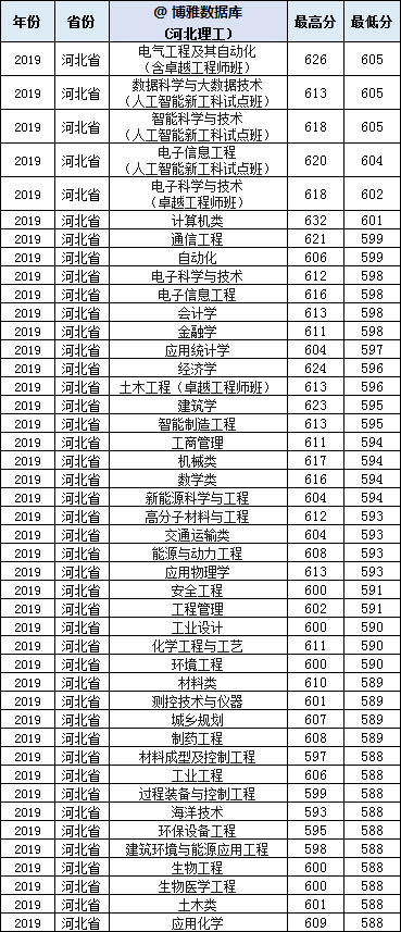 河北工业大学2019年分专业录取分,最高专业录取分605分,投档分588分,相差17分。