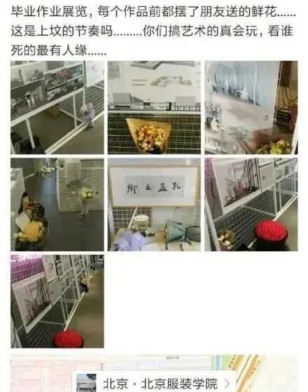 甚至说北京服装学院学生在作品前摆花像“上坟”,令人瞠目结舌。