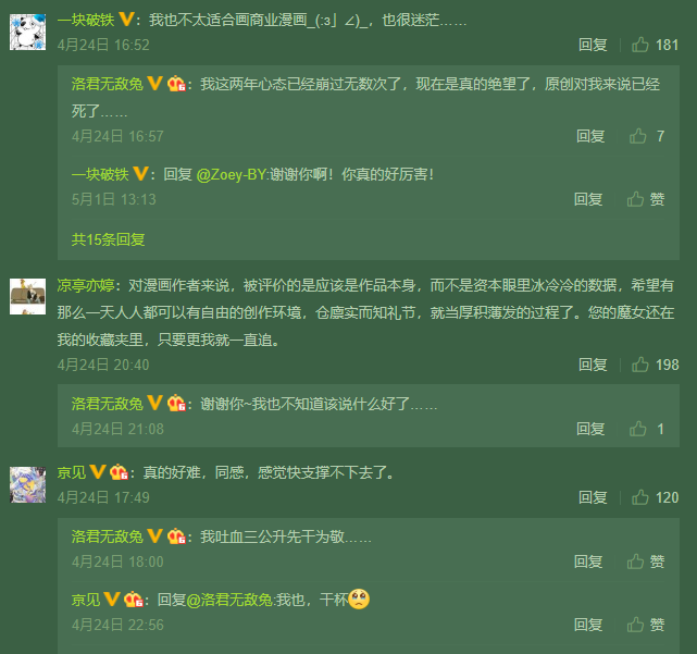 不久前,画师“洛君无敌兔”因为压力过大发微博表示放弃原创。