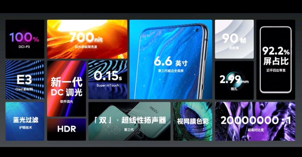 除此之外魅族还花费300万美金打造了极边全面屏:极窄边框,3.3mm下巴,几乎贴近四边等宽屏幕设计;