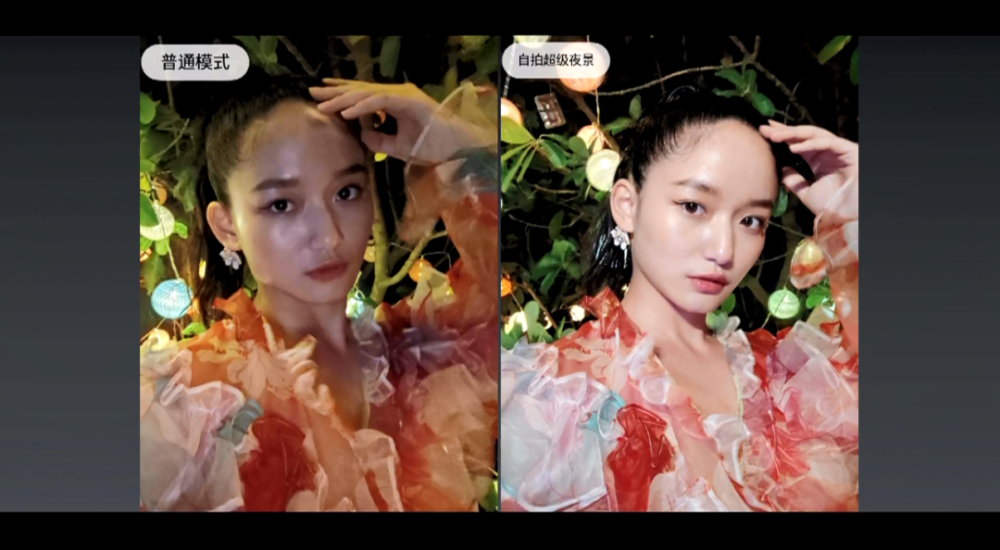 自拍超级夜景模式下的自动补光功能让女生们在晚上光线强度不足的情况下也能拍出美美哒自拍照。