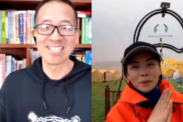 十一龙樾校长王海霞(右一)迎接学生(摄影/新华社摄影记者 任超)