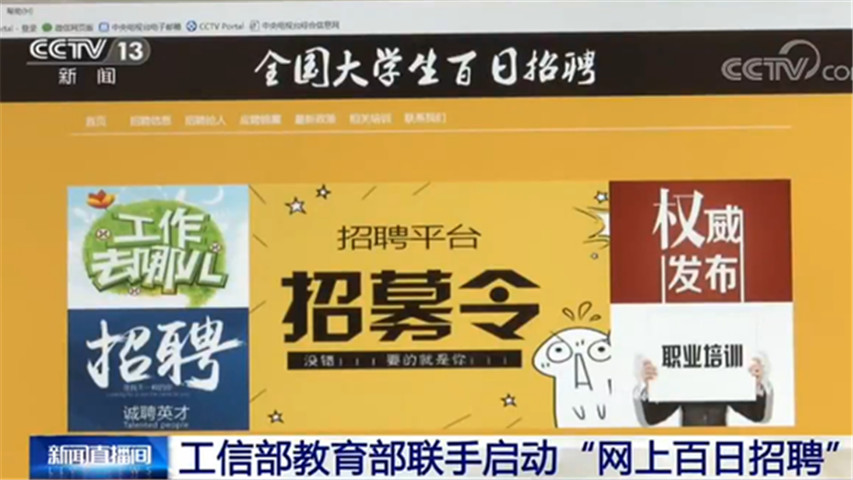 央视网消息:工业和信息化部、教育部从今天开始启动2020年全国中小企业网上百日招聘高校毕业生活动。