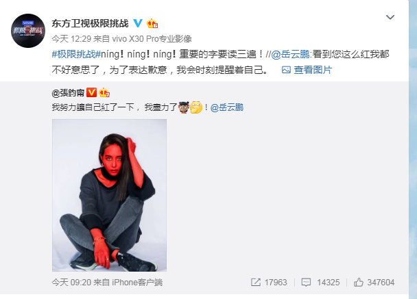 最近又因为岳云鹏在《极限挑战》游戏环节中,吐槽张钧甯不红,一度成为全网热点。张钧甯随后在自己微博将全身P红并回应:“我努力让自己红了一下,我尽力了。”网友们也是纷纷夸赞女神情商高,这一机智大方的回应,小编忍不住都要给满分了。