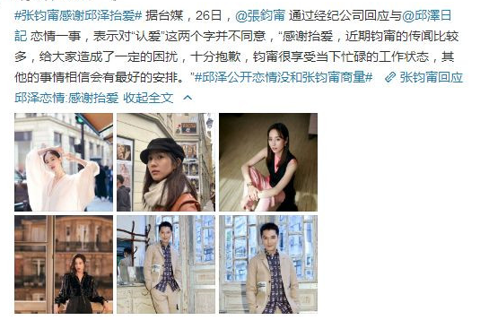 作为娱乐圈第一个敢把自己变这么红的女艺人,张钧甯一直以来的情商都让人称赞。之前邱泽主动承认对张钧甯正在努力追求,请大家祝福。张钧甯当时正在欧洲,并不知情,得知消息后,通过经纪公司回应“感谢抬爱”,只用了四个字就明显澄清了绯闻,也保全了对方面子,果然是情商高呀。