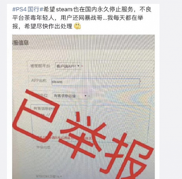 直到他们盯上了STEAM,不仅要举报平台,还要给STEAM APP差评,据说就因为STEAM玩家有说过肖战坏话的行为。
