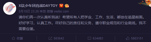 昨天,我的新偶像肖战说:请你们再一次认真听我说!希望所有人把学业、工作、生活,都放在追星前面。好好学习,认真工作。尽好自己的责任和义务,遵守职业规范和行业底线。我不需要应援。