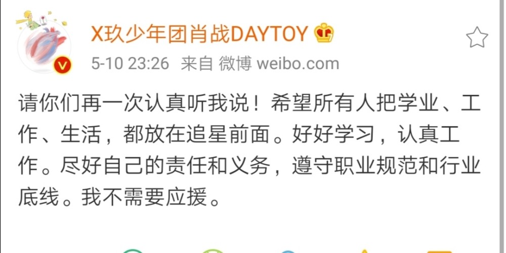 希望这一次,大家都能认真听他说,过好自己的生活,理智追星。其实他一直在发声,一直在传递正能量,请认真听他说,和他一起做正能量的事情,成为更好的人。