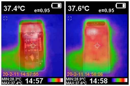 记录数据显示平均帧 59.7,机身前后的表面温度都没有超过 38 度,有着不错的温度控制。