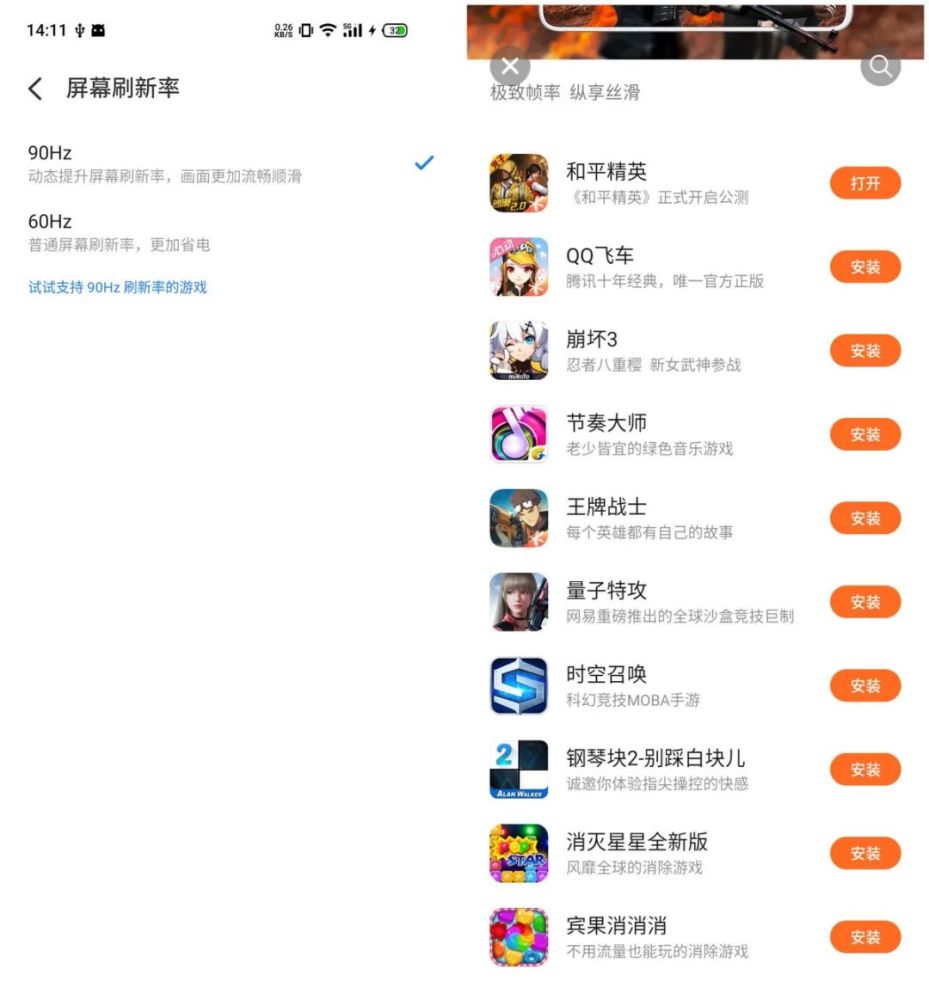 在屏幕刷新率的设置界面,我们可以轻松找到支持 90 帧运行的游戏。