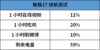 魅族17 分别耗电量为 11%、20%、10%,剩余电量为 59%,这个数据感觉还算可以。