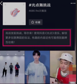 在新歌刚出来的时候肖战曾做过不少宣传,其中在抖音上发表#光点舞挑战#话题呼吁小飞侠们一起玩转自己的新歌,并给出翻牌互动的奖励。一时间玩转抖音的小飞侠们纷纷加入了解锁《光点》新玩法中。