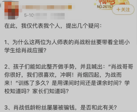随着老师带领孩子们追星、为肖战应援的弊端越来越明显越来越多的人发声批评。